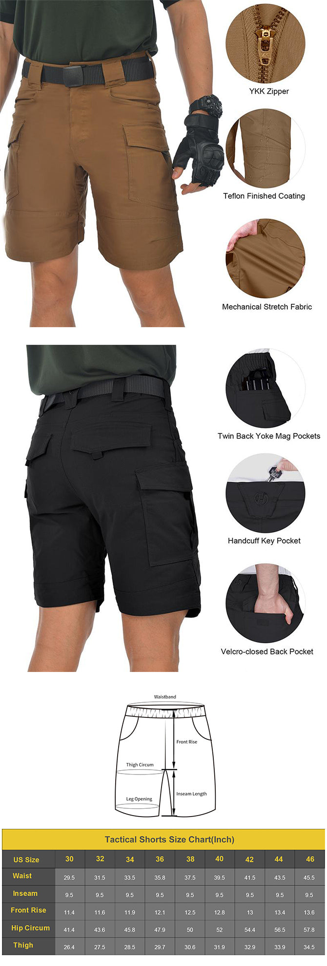 •【DURABLE TACTICAL SHORTS】Mechanical stretch provides lasting durability that moves with you. Teflon finish resists water, dirt, and stains for longer wear. Also, the tactical short’s material is fade/shrink/wrinkle-resistant, which makes them easy to care for.