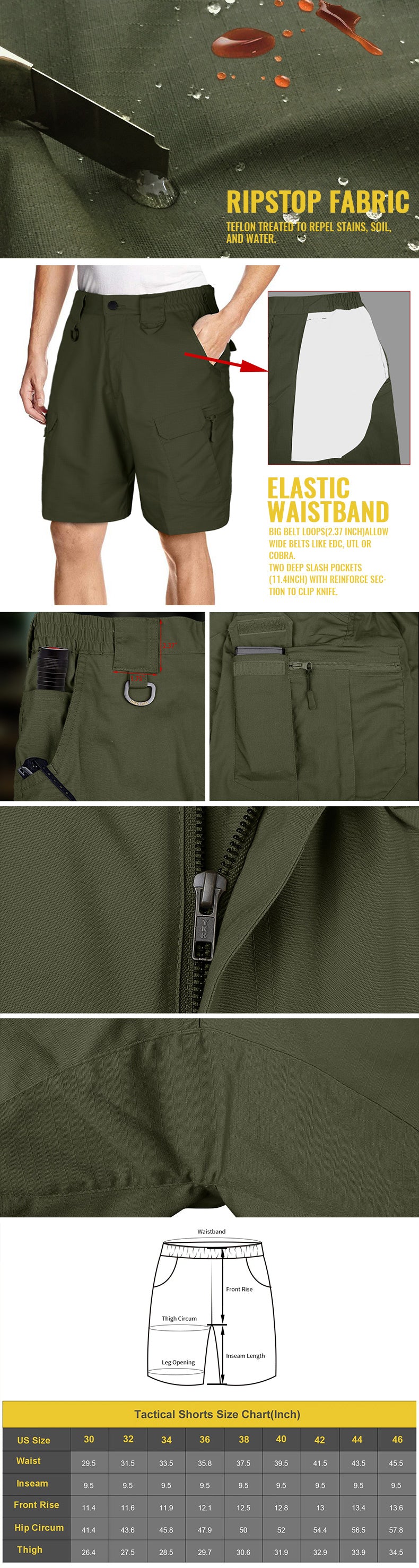 •【DURABLE TACTICAL SHORTS】Lightweight and stretch ripstop cargo shorts. Teflon treated to repel stains, dirt and water. Fade- shrink- and wrinkle-resistant. Bartacks in high-stress points.